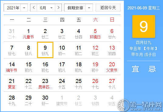 【黄道吉日】2021年6月9日黄历查询