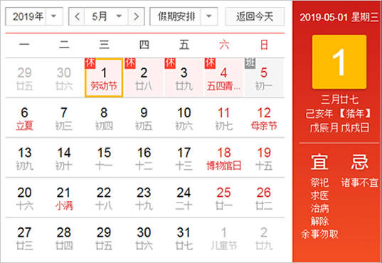 2019五一劳动节放假几天 5月1日至4日连休四天